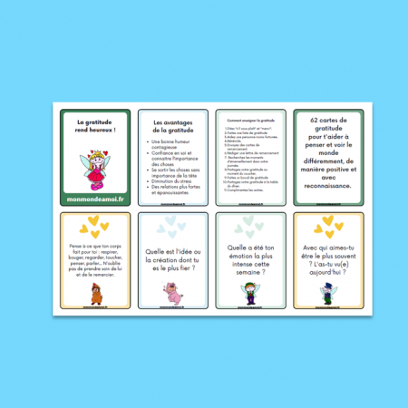 Ce kit comprend 44 cartes de positions de yoga avec les bienfaits de chaque posture sur chaque carte ainsi que 75 pages avec des activités de yoga et de relaxation avec de belles illustrations, des mini séances pour chaque moment de la journée, pour une compréhension facile des enfants. Ils reprendront avec plaisir les postures, des plus simples au plus élaborées.